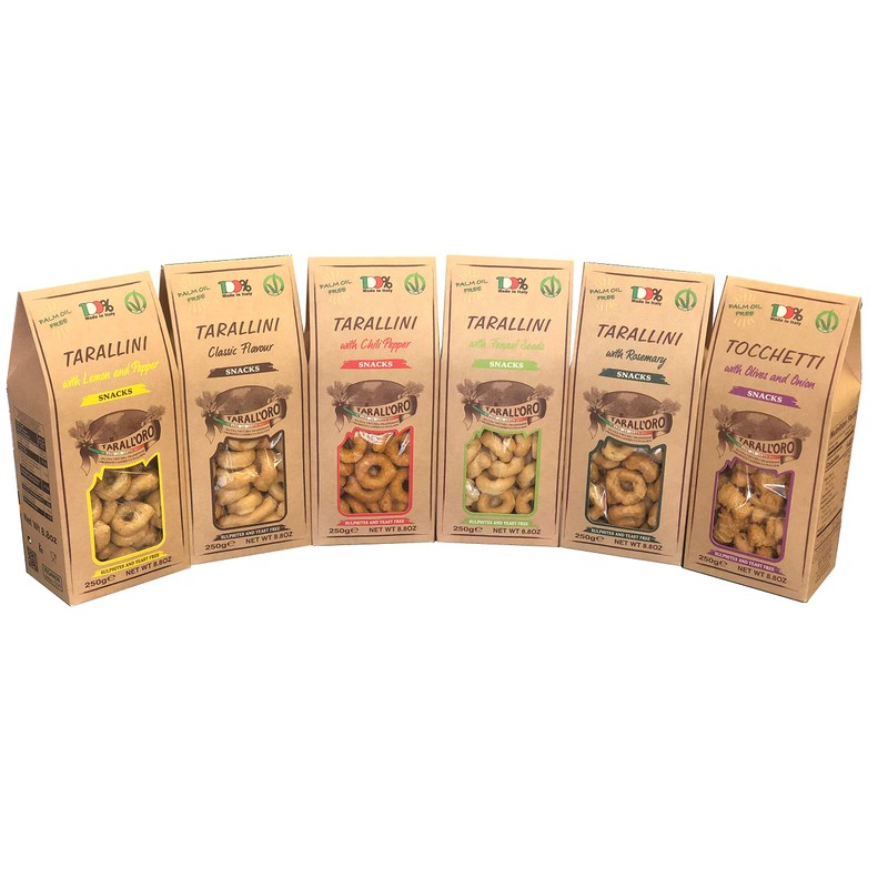 Tarallini Mixed Pack of 6 ( Classic, Fennel Seeds, Calzone(TOCCHETTI) , Lemon and pepper, Rosemary, Chilli Pepper )
