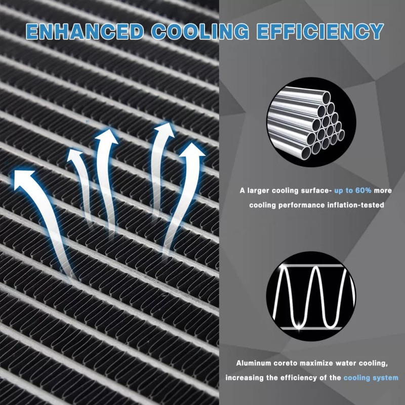 -Radiator has a much higher capacity for coolant than other ones.The cooling system will be more efficient and will be more resistant to temperature surges in racing applications.