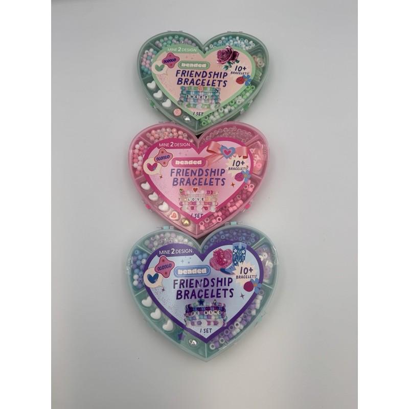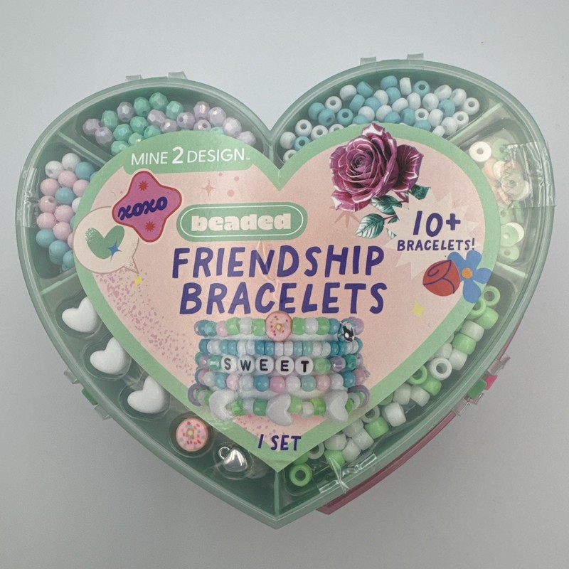 The product is a lot of 3 beaded friendship bracelet kits from Target. Each kit contains everything needed to make beautiful beaded bracelets, including beads, string, and instructions. Perfect for anyone interested in crafting and jewelry making, these kits offer a fun and creative way to create unique handmade accessories. Whether for yourself or as a gift for a friend, these bracelets are sure to be a thoughtful and meaningful present.