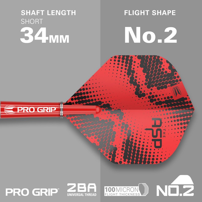 - PRO GRIP SHAFTS & PRO.ULTRA FLIGHTS – This bundle contains a total of 9 Short (34mm) Pro Grip shafts and 9 No.2 Pro.Ultra secure fit Flights with “The ASP” branding in Black, White and Red colour options, so you are sure to find the perfect choice for your game with this great value bundle.