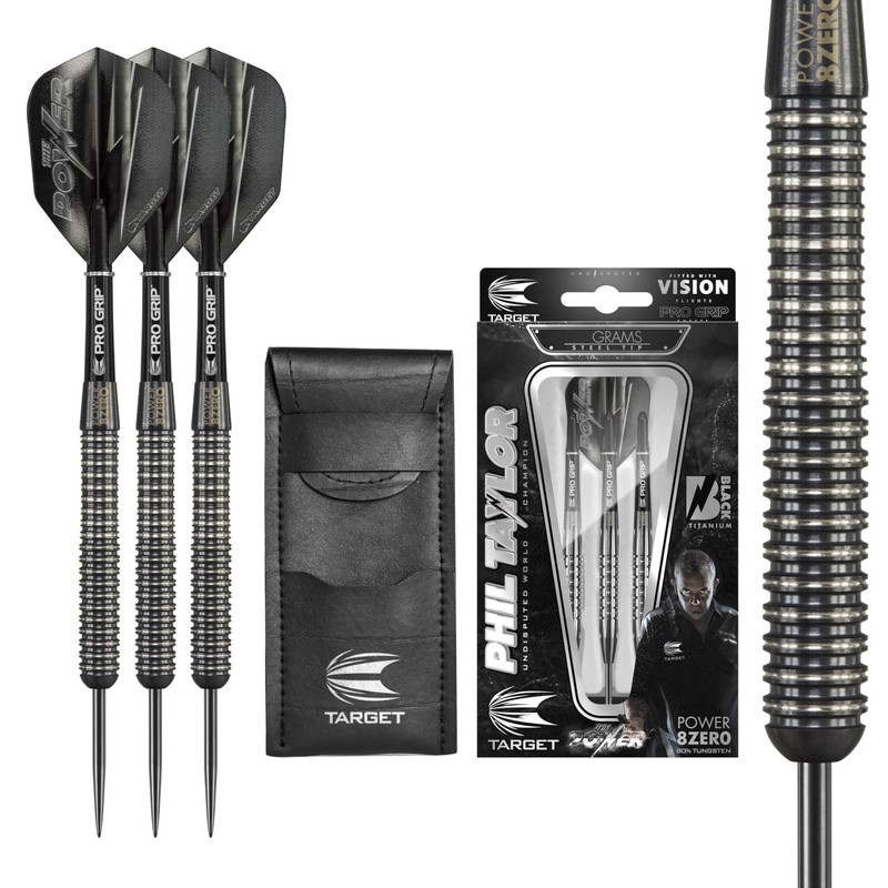 Target Darts Phil Taylor Power 8 Zero Black P8Z4 Steel Darts Set, 80% Tungsten, 21g