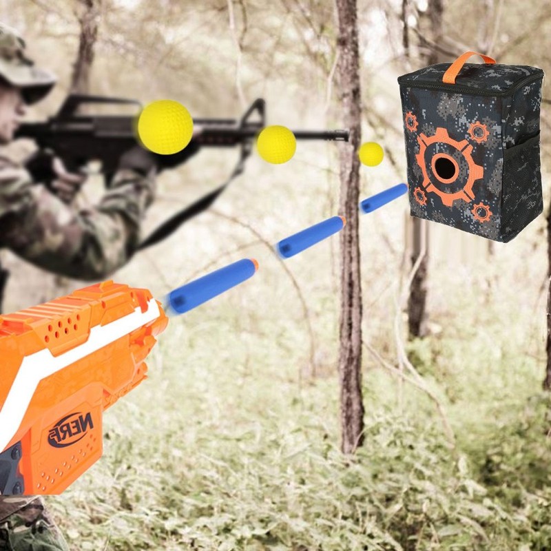 - UNIQUE DESIGN - The target pouch bag made of durable canvas material, features front bulls eye opening for targets practice, or storing blasters.the two side has a grid to store toys.