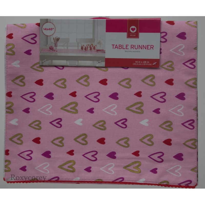 Valentine's Day Pink with Gold, Purple & Red Hearts Table Runner 100% Cotton Machine washable 14 x 48 New with tag |