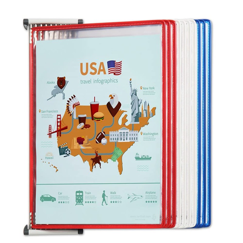Tarifold Wall Mounted Reference and Display System - National Flag: USA - 10 Double Sided Pockets - Letter Size (W291USA)
