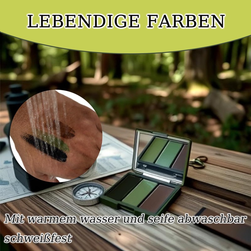 Tarnschminke Camouflage, Creme 3-Farben,Bodypainting Farben, Make-up Face Paint für Körperkunst Party Schminke, 3-Farben schwarz Oliv braun Chameleon,Tarnung Survival Militär Armee