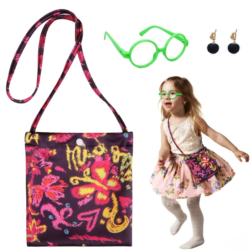 - Magic Movie Themed Design: Mirabel costume accessories kids are designed with Encanto elements. Colorful bags, plush earrings, and green round glasses frames can make your child dress up close to the cartoon characters and make your child happy.