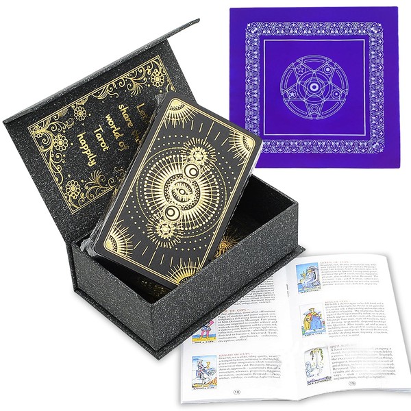 Tarot Cards for Beginners Set Tarot Cards&Tarot Psychic Tablecloths Beginner Tarot Cards with Meanings, Eye of Black Gold Tarot Card Set with Guide Book