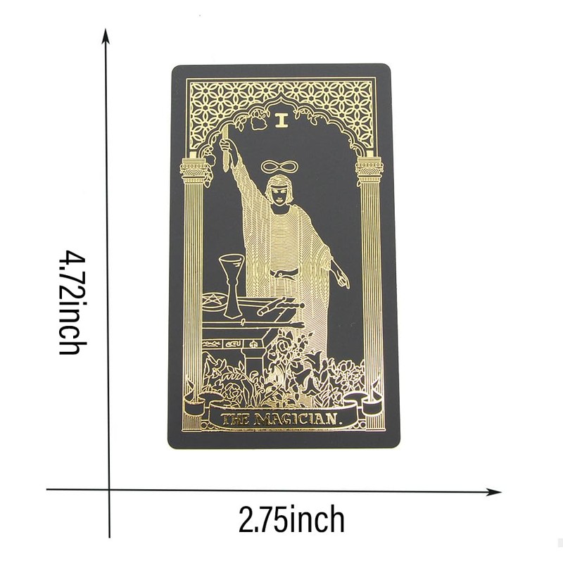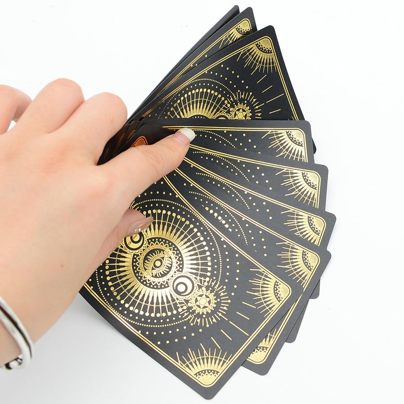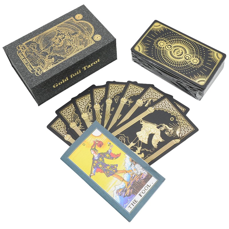 - Eye of Black Gold Design Theme: Featuring a unique "Eye of Black Gold" theme, this set blends mysticism, modernity, and classic elements. The black and gold color scheme adds an aura of mystery, making it perfect for those who appreciate profound symbolism and artistic depth in their Tarot deck.
