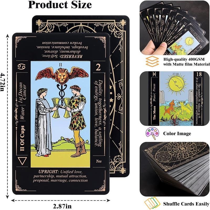 Tarot Cards with Guide Book & Linen Carry Bag, 78 Classic Original Tarot Cards Deck Fortune Telling Game with Meanings on Them for Beginners to Expert