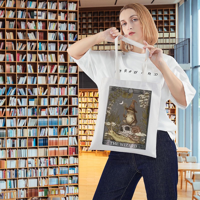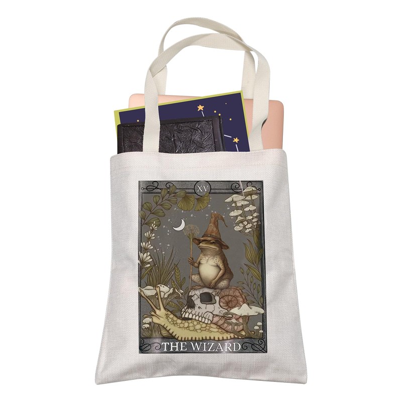 Tarot Lover Gift XV The Wizard Shopping Bag Retro Forest Frog Witch Tarot Tote Bag (XV The Wizard)