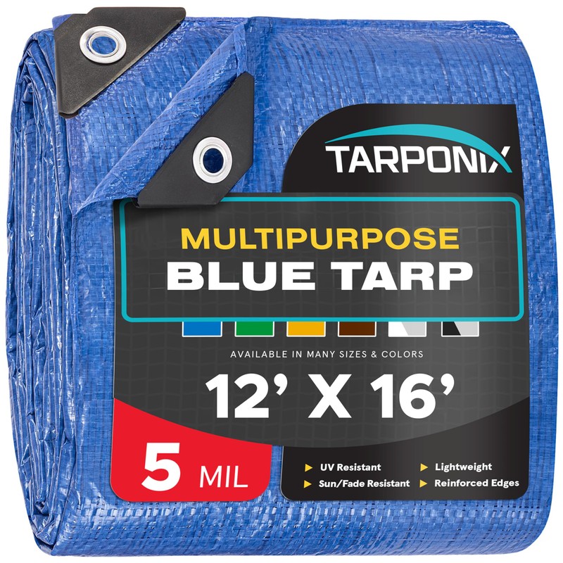 TARPONIX Better Blue Poly Tarp 12’ x 16’ – Lightweight 5 Mil Waterproof Cover – Durable, Weatherproof, Multipurpose Protection for Camping, Roofing, Construction