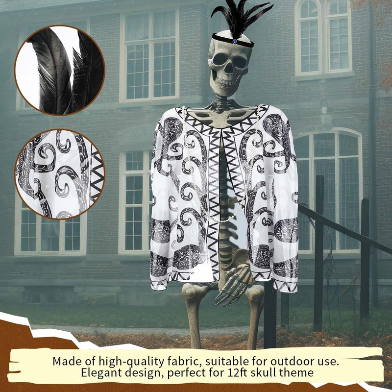 Tarpop Halloween 12 ft Skeleton Outfit Set Giant Skeleton Witch Theme Costume Includes Feather Headband, Pearl Necklace, Lace Cape for Halloween Decorations Outdoor Yard Haunted House Prop Decor