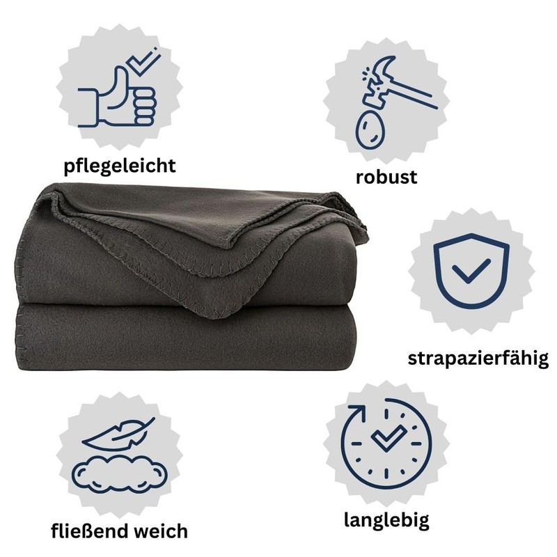 - Q U A L I T Ä T: The high-quality fleece blanket with narrow decorative stitch edge and anti-pilling finish is made of 100% polyester and is therefore cuddly soft. The blanket is tested for harmful substances according to Oeko-Tex Standard 100.