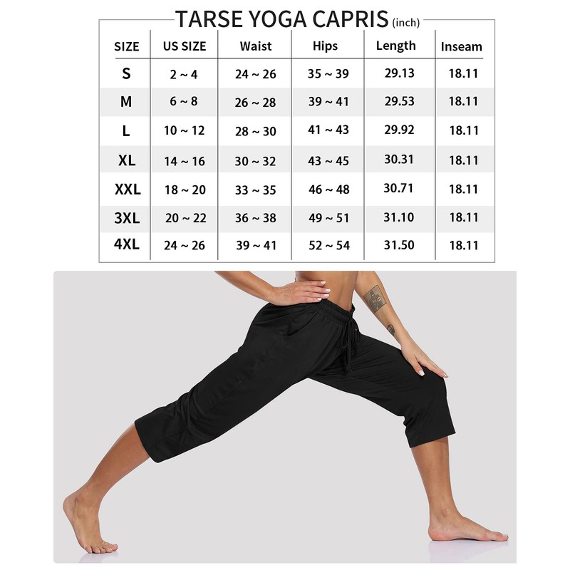 TARSE Women's Yoga Pants with Pockets Capri Length, Stretch Drawstring Workout Sweatpants, Soft Lounge Crop Pants