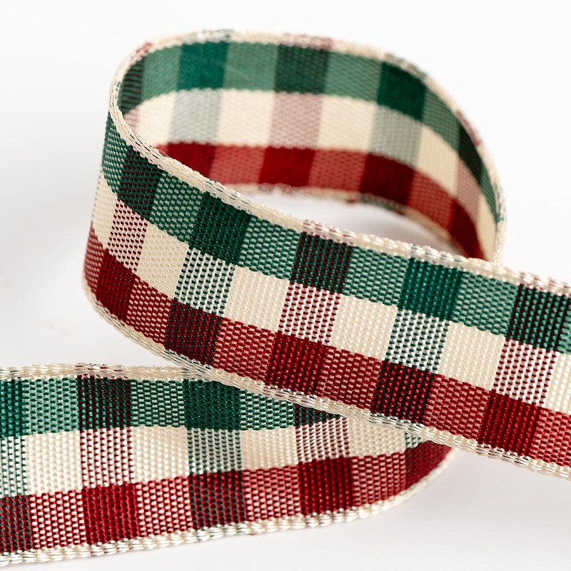Tartan Ribbon 16mm x 10M - Burgundy/Cream/Green