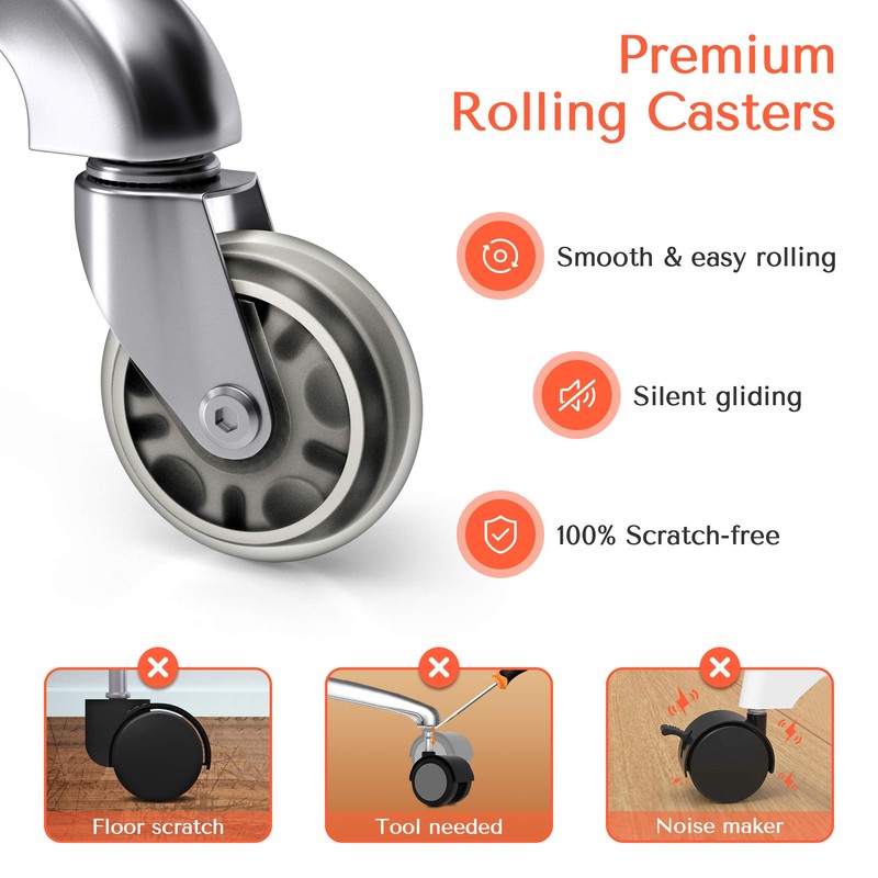 - ✅ WHISPER-QUIET GLIDE ROLLER BLADE WHEELS: Our stool chair features ultra-smooth 3-inch glide wheels, which will not only allow you to move around your workstation without making noise, but also prevent annoying scratches on your floor.
