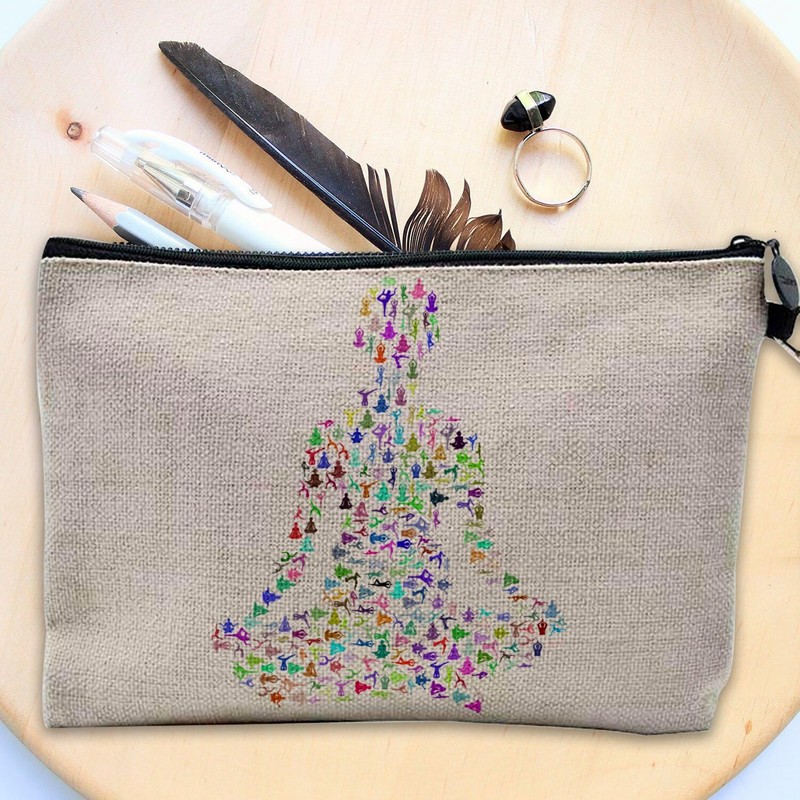 Tasche aus Leinen – Meditation für Yoga Haltung mehrfarbig – Kosmetiktasche aus Leinen in Leinenoptik – Geldbörse – 15 x 10 cm, leinen, 23.5 x 15 cm, Kosmetiktasche