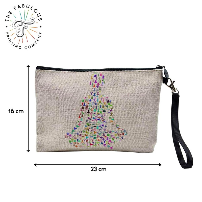 Tasche aus Leinen – Meditation für Yoga Haltung mehrfarbig – Kosmetiktasche aus Leinen in Leinenoptik – Geldbörse – 15 x 10 cm, leinen, 23.5 x 15 cm, Kosmetiktasche