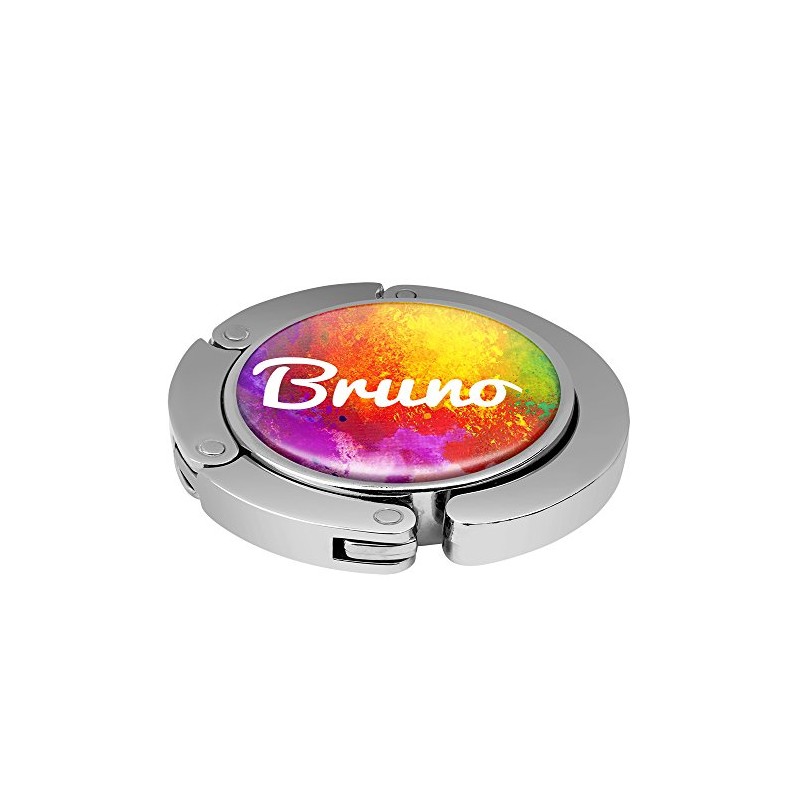 Handtaschenhalter mit dem Namen Bruno bedruckt. Kreative Layouts mit Ihrem Namen zieren diesen praktischen Taschenhalter. Ideal für unterwegs oder das Büro – so hängt Ihre Tasche immer griffbereit neben Ihnen, statt auf dem Boden zu stehen. Der Handtaschenhalter ist auch für schwere Taschen geeignet, er besitzt eine Tragkraft bis zu 10 Kilogramm.