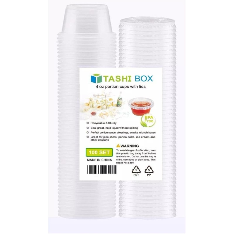 TashiBox 4 oz Plastic Disposable Portion Souffle Cups with Lids 100 Sets clear