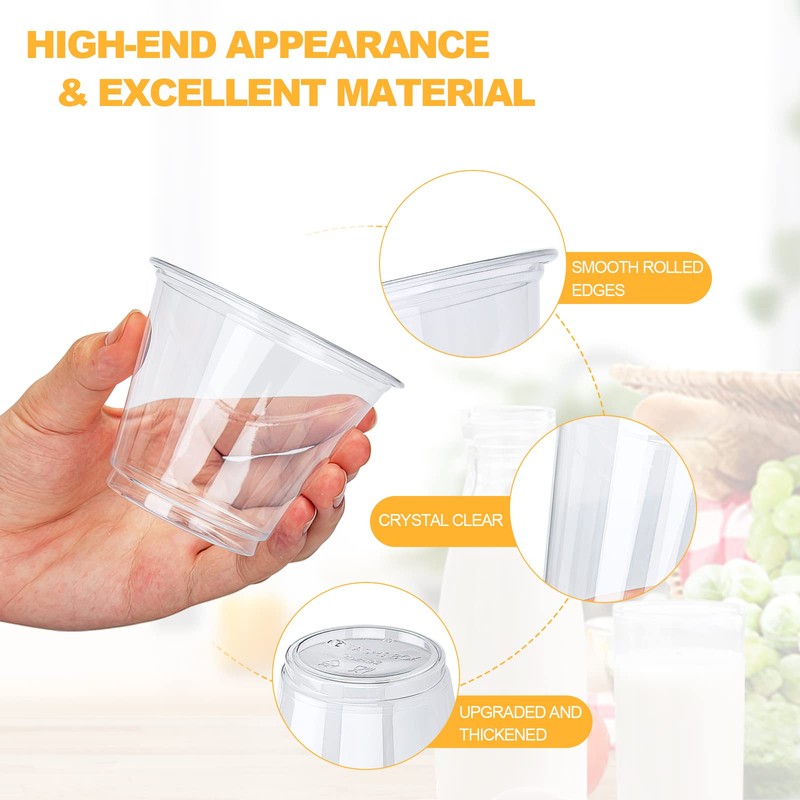- This clear plastic cup is made of Polyethylene Terephthalate, which can be used in a variety of scenarios.