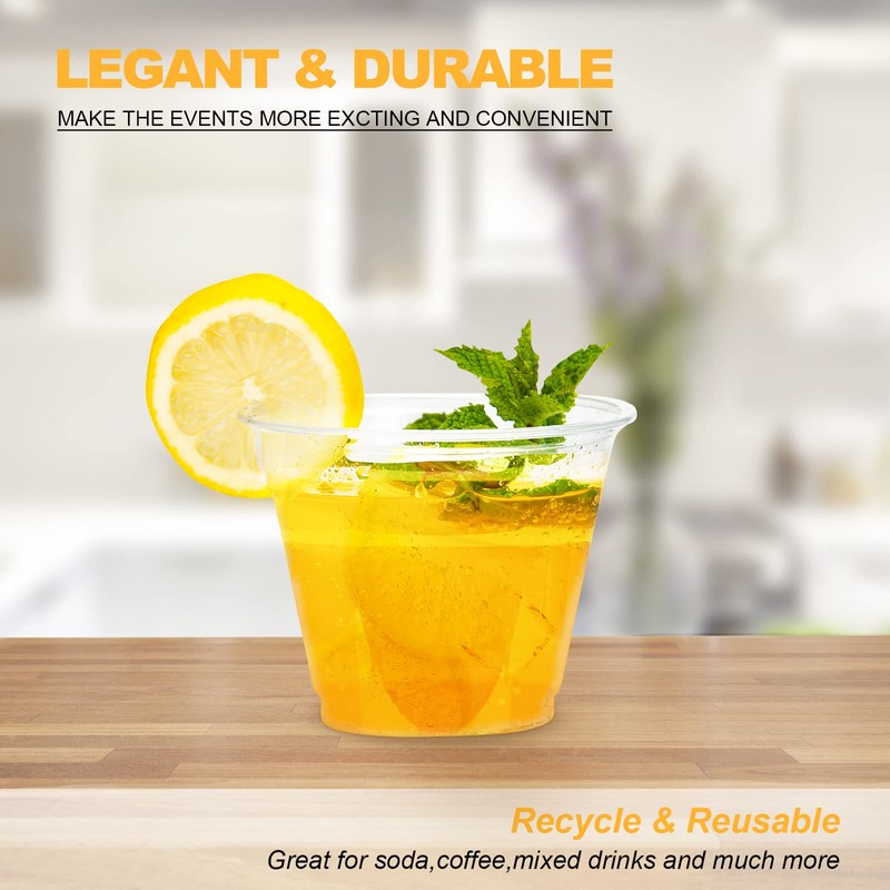 - 9oz. Plastic Crystal clear drink cups great for any COLD beverage such as juice, iced Coffee, Iced tea, bubble tea, lemonade, smoothies, parfait, soda, beer, frozen drinks, mixed drinks, cocktails, Frappuccino, lattes and so many more