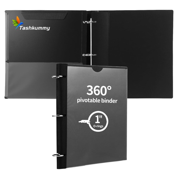 Tashkummy 360 Degree Pivotable Binder, 3 Ring Binder 1 inch, Flexible Binders 3 Ring, Foldable Three Ring Binders- Black