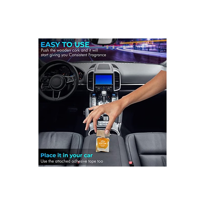 Tasotti Secret Cube Car Perfume air freshener comes with an elegant clear bottle, it ensures a long-lasting and pleasant scent. This air freshener is simple and very easy to use, just push the wooden cork dispenser 3-5 times and this will give you an amazing pure fragrance. Our Secret Cube Car Perfume air freshener is stylish, easy to use fragrance, suitable for use in the car, at home or in the office. You can enjoy the scent throughout your journey as it is long lasting.