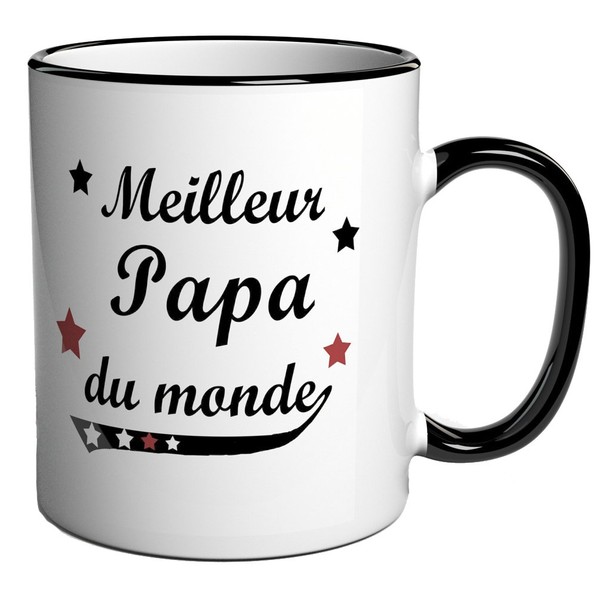 Beautiful mug in vintage style look with saying "Meilleur Papa du monde". The handle and rim at the top of the mug are in black. A great gift idea for any dad/man (also for Father's Day as a Father's Day gift).