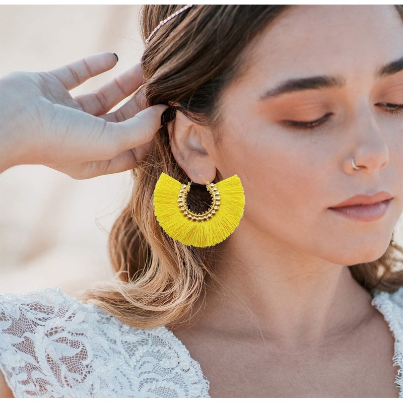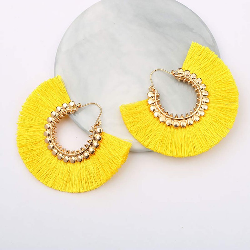 - Materials: This fan-shaped tassel earrings made in high quality thread, smooth and lightweight