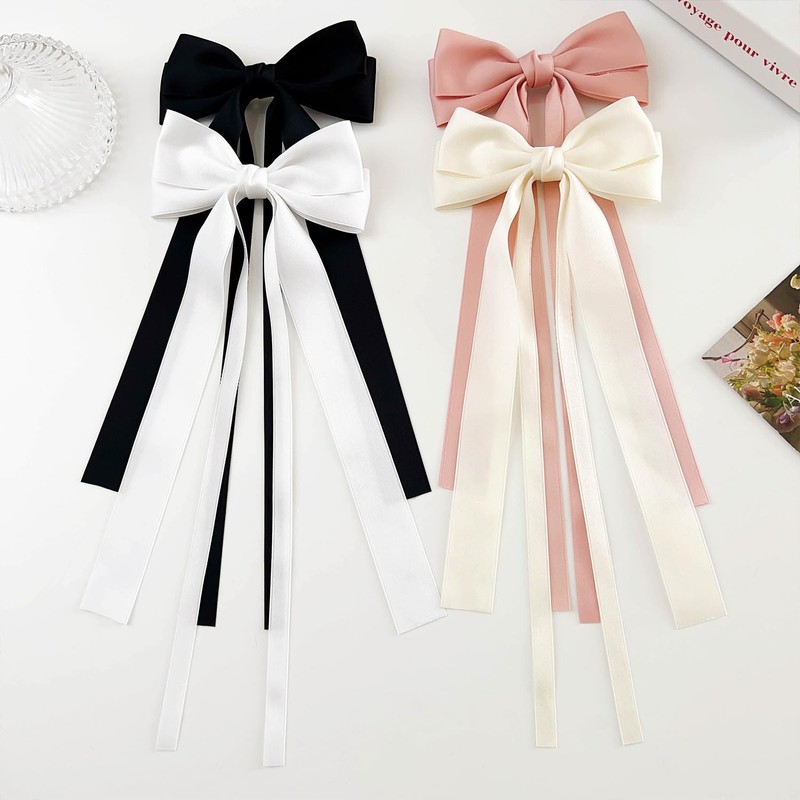 - Hair Bow Ribbons for Women Hair Clips: The bow hair clips are black and white, cute and have long ribbons that hang down, When you walk, the hair ribbon will float in the wind, large hair bow clips for women girls looks great on various hairstyles