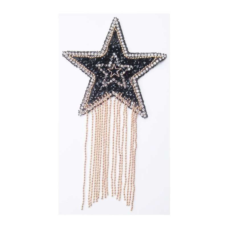 Tassel Star Badge Embroidered Sticker Crystal Iron on Patches,Rhinestone Applique Pack of 2 Pieces (B)