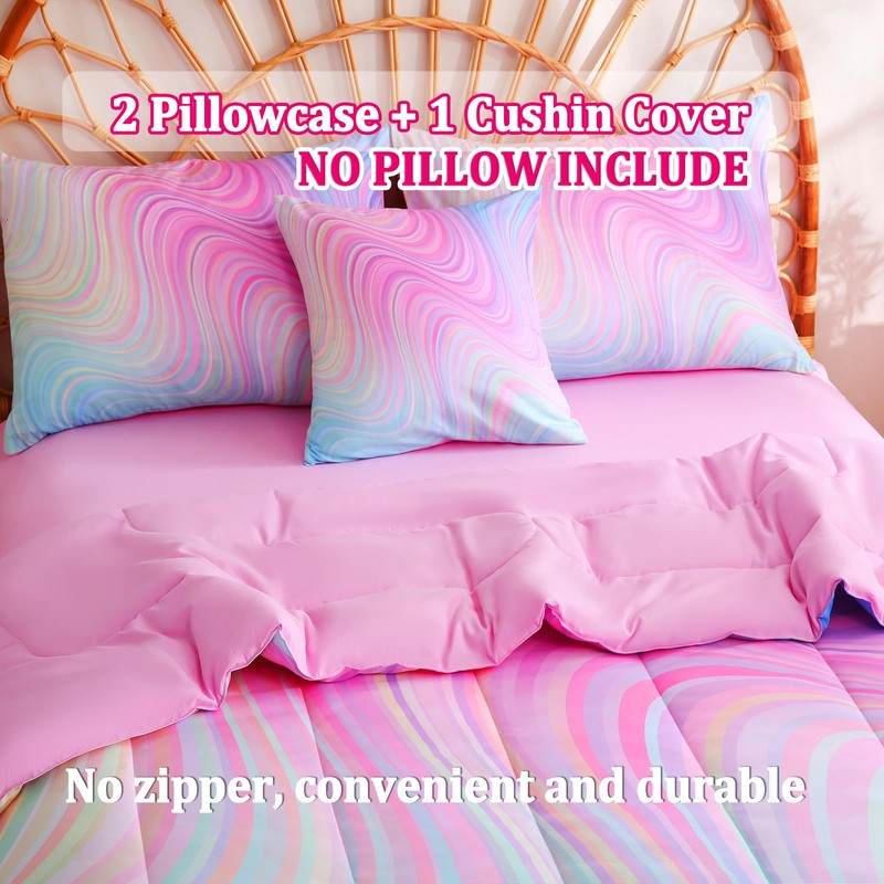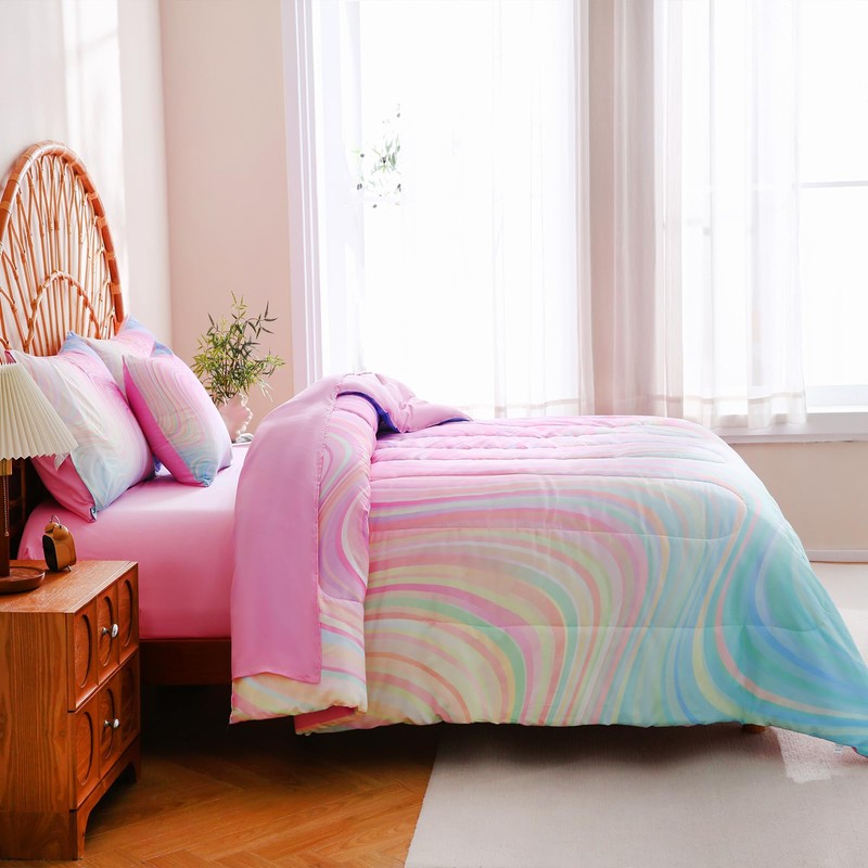 Tasselily Pink Comforter Full Size,Blue Purple Full Bedding Sets for Girls,6 Pcs Tie Dye Rainbow Full Size Comforter Set with Sheets for Girls Kids Teens