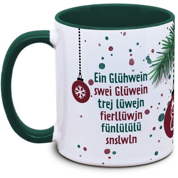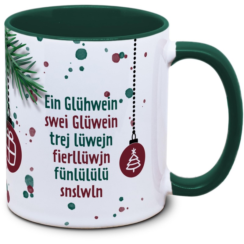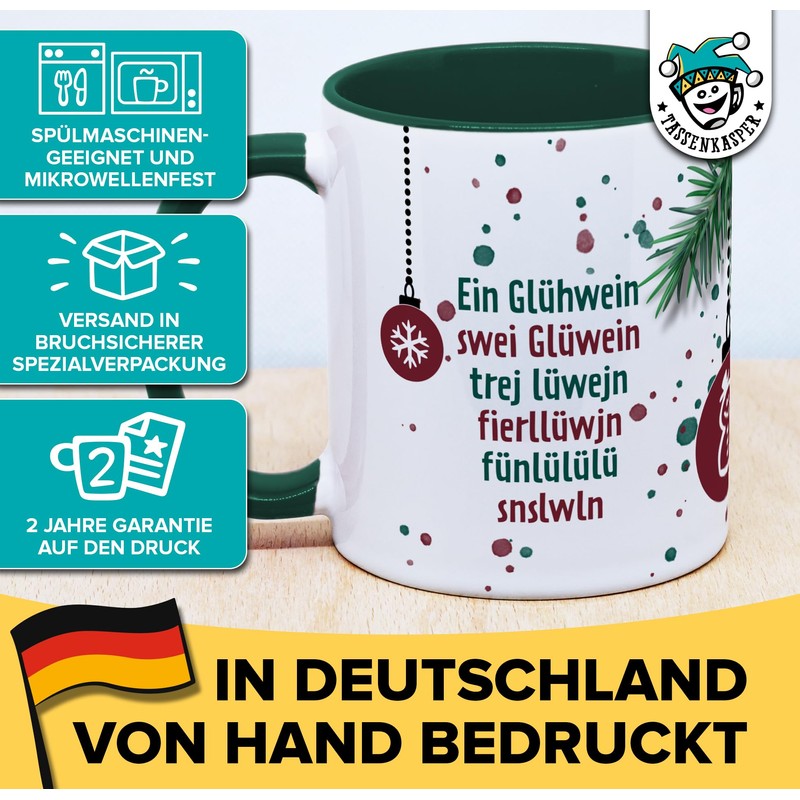 - Mug with fun mulled wine motif: "Ein Glühwein, swei Glüwein, trej lüwejn..."