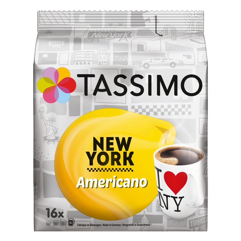 Tassimo New York Americano, XL Ground and Roast Coffee, Capsules, 16 T-Discs
