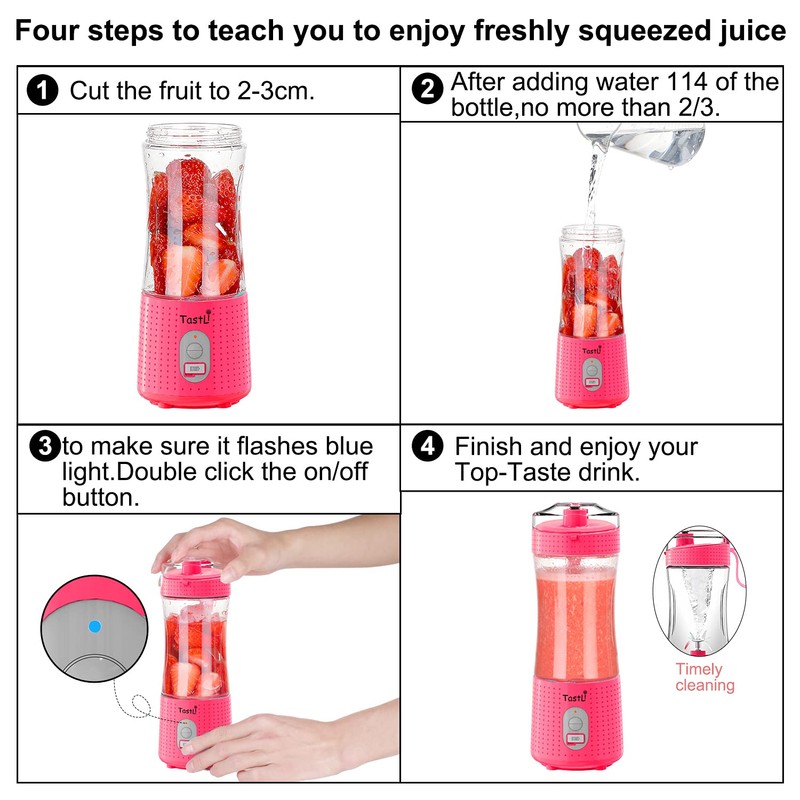 - Alto rendimiento y portabilidad: la licuadora portátil TastLi recargable USB incorporada se puede cargar fácilmente con un banco de energía, computadora u otra fuente de alimentación USB. La potencia nominal de 150 W se puede cargar completamente alrededor de 3 horas y se puede utilizar hasta 15 veces. Botellas licuadoras de 380 ml de capacidad y solo 1 libra de peso del producto es fácil de transportar en cualquier circunstancia como entrenamiento, viajes, camping, pesca. Muy buena mini licuadora para cocina o al aire última intervensión para hacer batidos de leche y batidos.