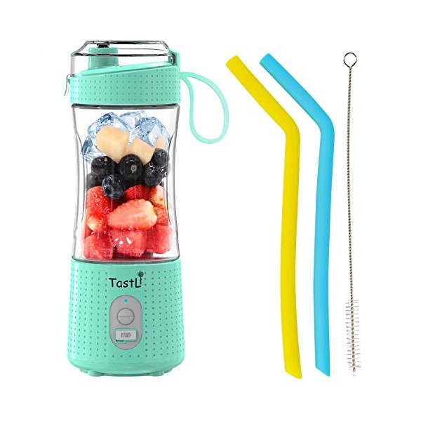 - Advanced Portable Blender USB Rechargeable: TastLi portable blender is BPA free, made by food-grade and non-toxic PCTG Baby bottles materials. It has unique safety design including magnetic induction, automatic stop, silicone charging port protection, non-slip and shock absorption base. The eco-friendly material and the unique safety design give you a duplicate protection and make you feel safe while enjoying delicious fresh juice, shakes and smoothies .