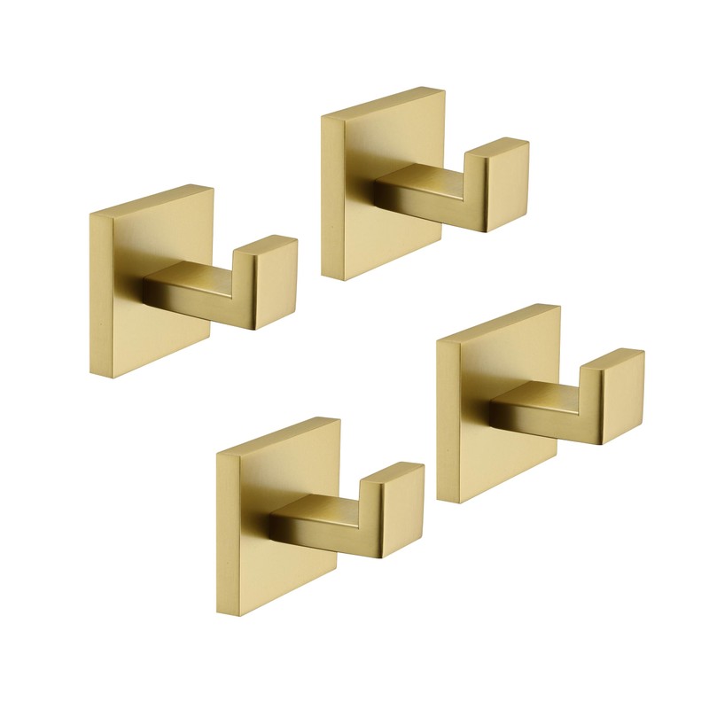 TASTOS Bath Towel Hooks Brushed Gold, 4 Pack Stainless Steel Robe Coat and Clothes Hook, Heavy Duty Wall Hook for Bathroom & Kitchen, Modern Square Style Wall Mounted…