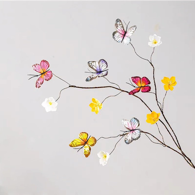 Artificial butterfly branches that can be bent at will can be used to decorate drab branches in autumn and winter, wrapping them around branches or railings to add color to your yard.