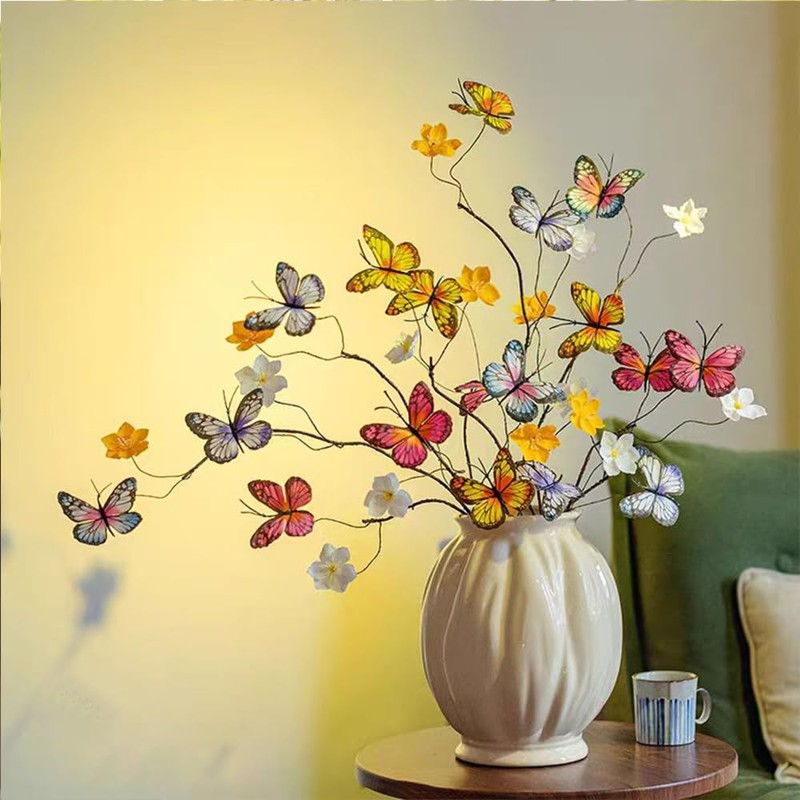 TaTalife Artificial Butterfly Branche, Butterfly Decorations, Simulation Branch Stems with Fake Butterfly Floral Arrangement for Vase Filling Home Office Party Decoration (Colour Mixture)
