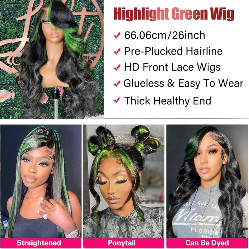 Hair Color: green wig, black and green wig body wave wig 13x6