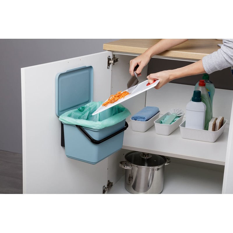 - Kitchen organic waste bin with holder, 6L capacity, polypropylene, made from 100% recycled material.
