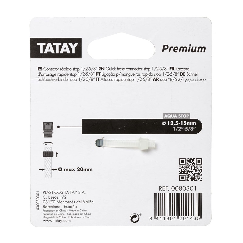 TATAY Premium Quick Hose Connector for 1/2" (12,5mm) - 5/8" (15mm) with Aqua STOP, Universal Fitting, Solar Protection, Easy Installation, Grey - Black