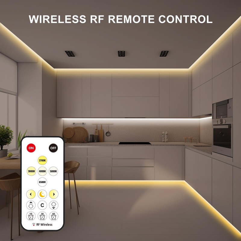 Tatazone 6.56ft COB Led Strip Light with RF Remote, Tunable White, Dimmable CCT COB Led Lights, Adhesive Led COB Light Strip for Bedroom, Kitchen, Cabinet