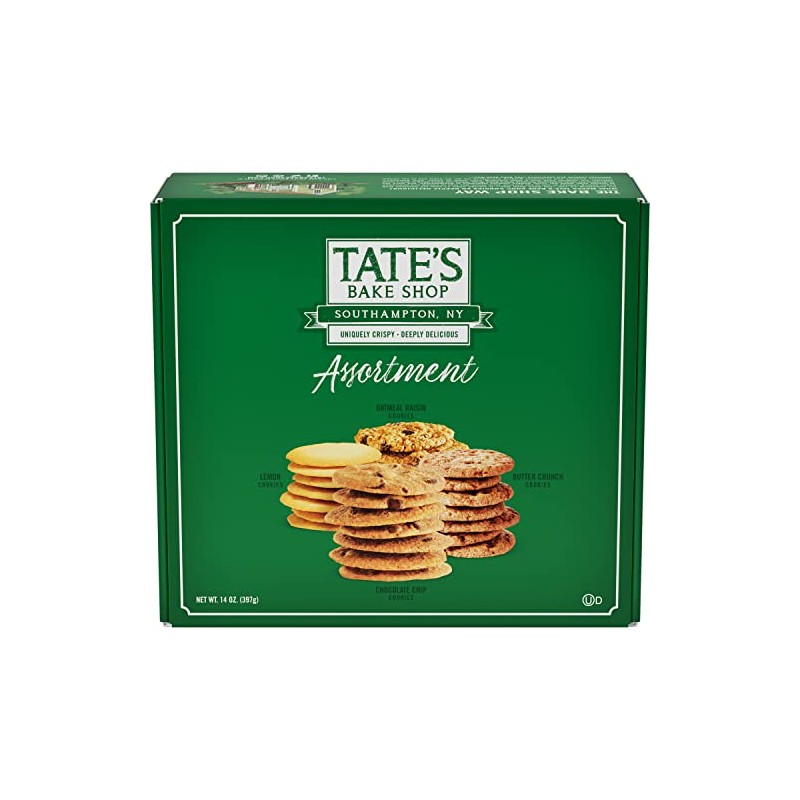 - One 14 oz cookie box of Tate's Bake Shop Chocolate Chip, Oatmeal Raisin, Butter Crunch and Lemon Cookies