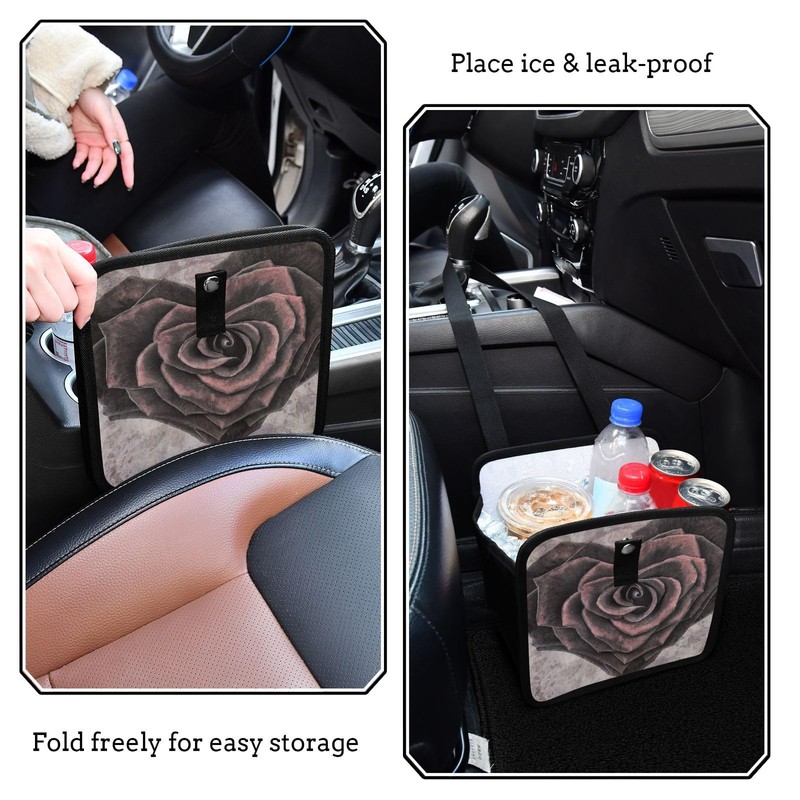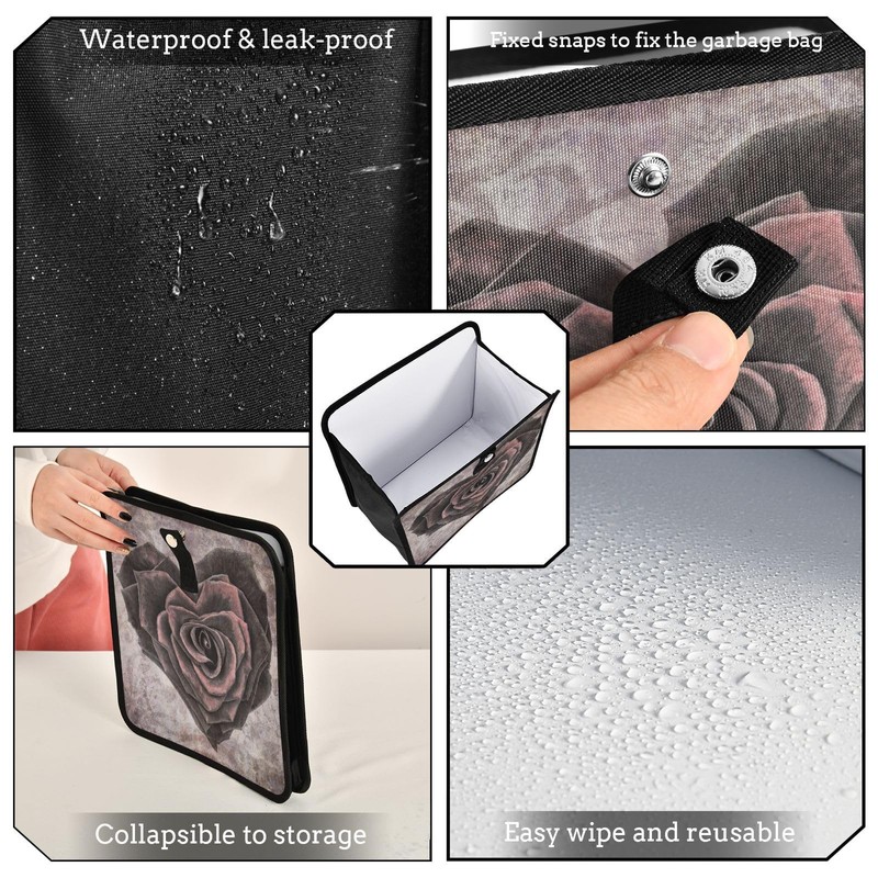 Tatenale Foldable Hanging Trash Bin - Car Trash Can with Adjustable Shoulder Strap, Rose Heart Floral