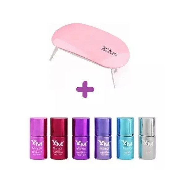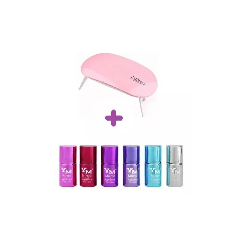 Kit lampara sun mini portatil + 6 piezas barniz acabado espejo (los Barnices se envian de forma aleatoria y el modelo o marca pueden variar)