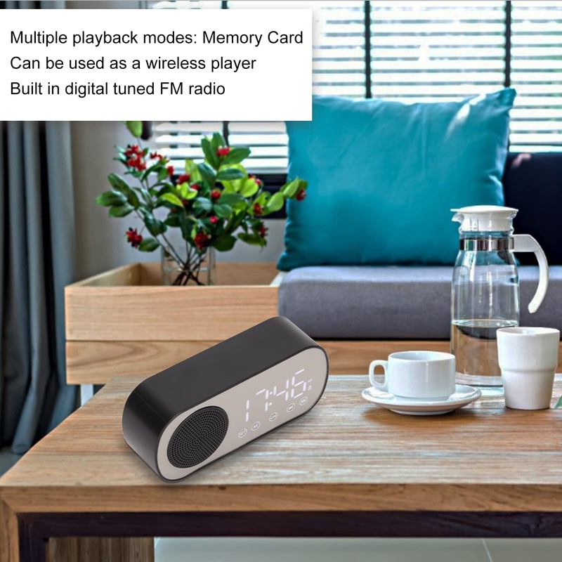 - ⏰3 IN 1 Multifunctional Alarm Clock---Mirror Alarm Clock LED Digital Clock. You can have Bluetooth speaker + digital alarm clock + FM radio all in one. One item realizes all your desk and bedside needs and makes your messy desktop instantly clean. The Bluetooth speaker built-in microphone, intelligent noise reduction without delay, so you can free your hands when talking.