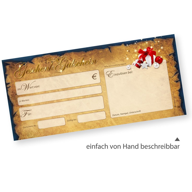 50 gift vouchers DIN long (210 x 98 mm), 350 g/m² offset cardboard, very easy to write on by hand and for stamping.