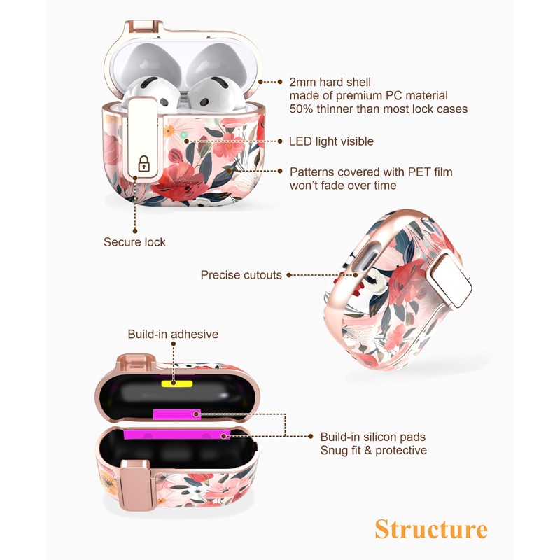 - [Perfectly Fit] Specially designed for AirPods 4th generation. Two-pieces design with Lock. Build-in 4 silicon pads offer a snug fit.